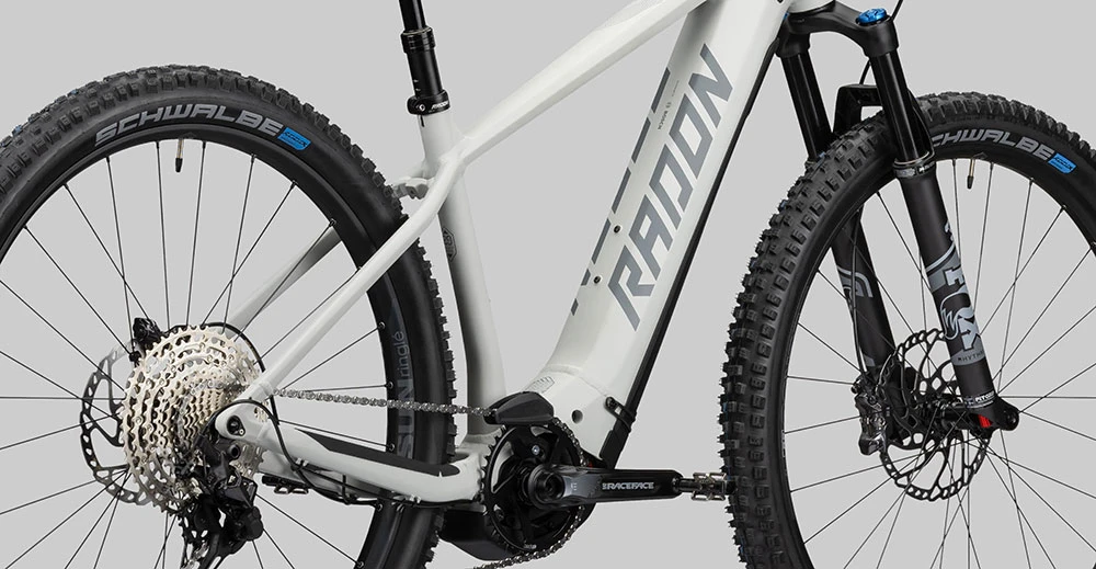 The JEALOUS HYBRID 10.0 625 as the flagship of the RADON E-Hardtail fleet is available for the first time for the model year 2022. It convinces not only with its beautiful, hydroformed aluminum frame in noble, matte gray, but also with a lot of trail competence through the powerful drive and the cleverly chosen, very high-quality equipment.